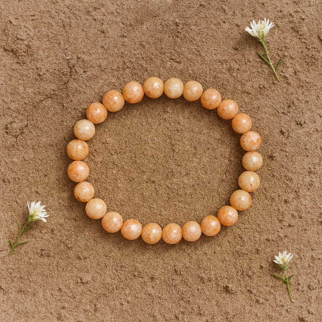 Bring a warm, uplifting glow to your everyday style with this Natural Sunstone Gemstone Bracelet, crafted from genuine 8 mm round beads, ethically sourced and professionally certified for authenticity. Sunstone is admired worldwide for its natural shimmer, soft peach-gold tones, and symbolic energy of joy, confidence, and optimism. Each bead displays a unique natural sparkle that instantly elevates any outfit — making it a beautiful accessory for daily wear, gifting, self-care practices, or intention setting. Your bracelet comes with a certificate of authenticity, verifying its natural origin and quality. Perfect for customers in India, the US, the UK, and global gemstone lovers who appreciate ethically sourced, handcrafted natural stone jewellery. Designed by Canvas Gemstone with a premium look, soft shine, and meaningful energy expression.