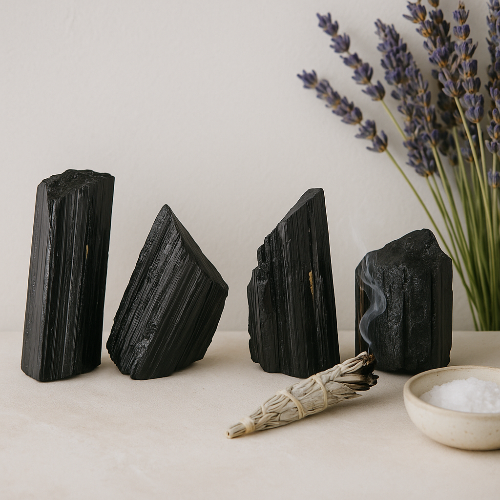 The Black Tourmaline Raw Cluster is a striking natural collectible known for its deep jet-black tones and textured, rugged surface. Hand-selected for its authenticity, each cluster reveals the raw strength and timeless character of one of the most admired stones in the mineral world. This piece is ethically sourced and 100% natural, ensuring you receive a premium collectible that reflects the beauty of the earth’s artistry. Its bold presence makes it ideal for collectors, mindful décor enthusiasts, and those who appreciate raw Gemstone in their natural form. Every cluster is unique in size, surface texture, and natural growth patterns, making each collectible truly one-of-a-kind. Usage :