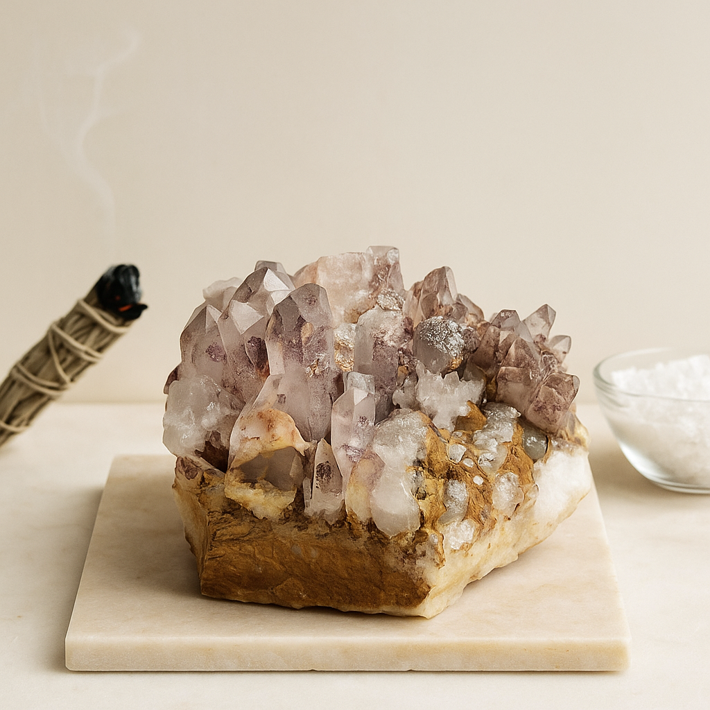 • Surround with natural elements like plants, selenite plates, or soft candlelight (for ambiance only)