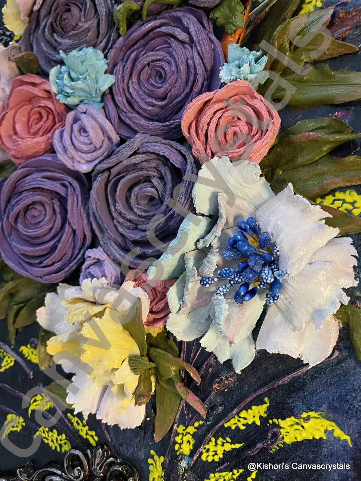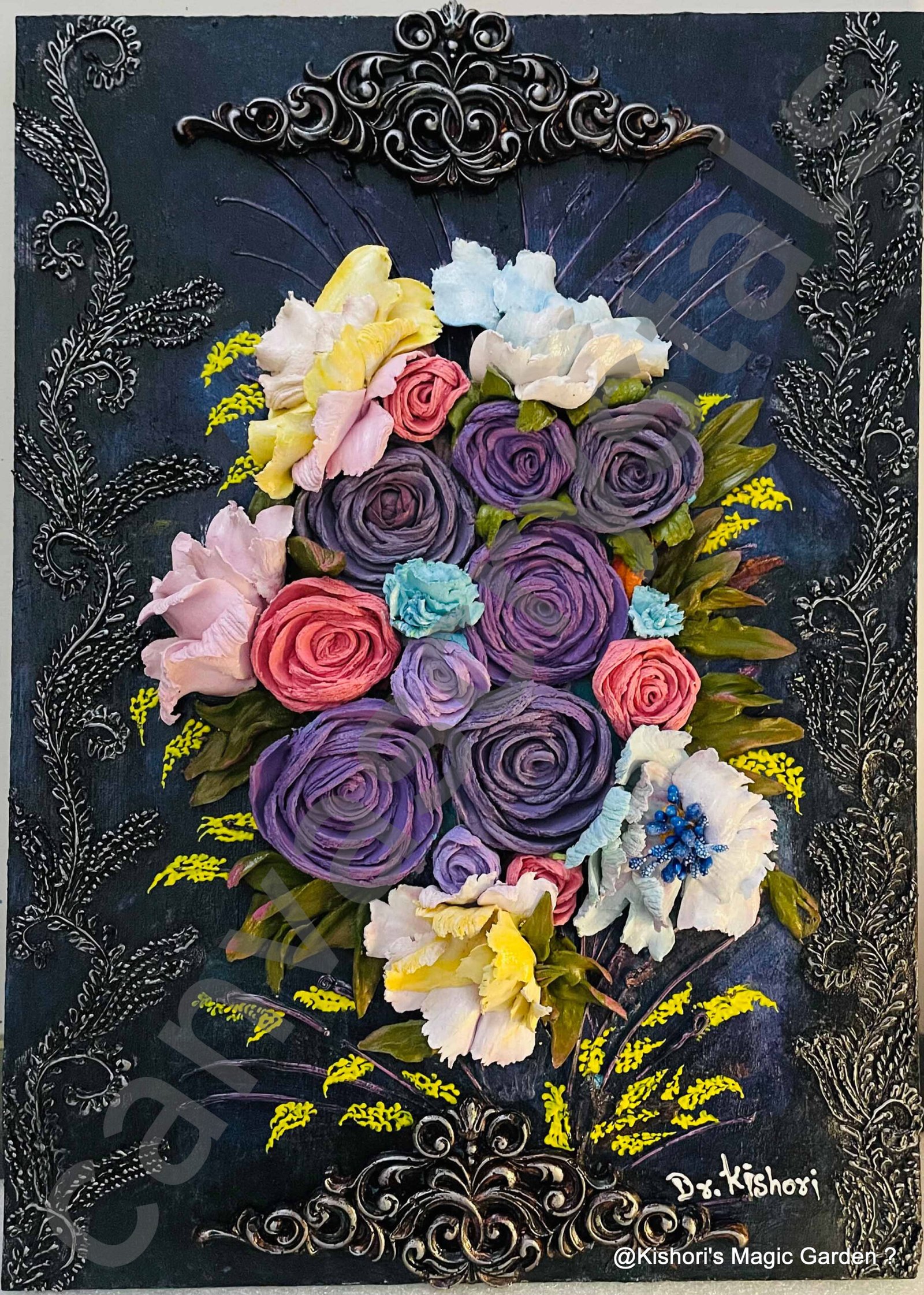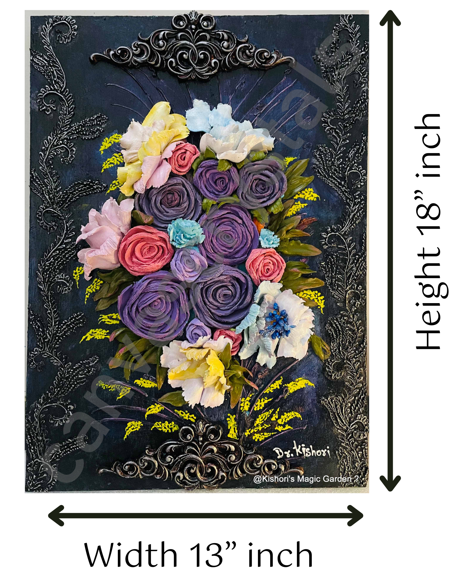 Experience India’s first realistic 3D sculpture painting — an exquisite blend of Ranunculus & Peonies handcrafted with rare artistry. Inspired by globally exotic florals, this 18×13” masterpiece brings winter blooms to life through layered petals, intricate textures, and radiant colors like purple, blush pink, sky blue, ivory, and lemon yellow. These vibrant flowers symbolize feminine grace, healing, peace, and delicate strength, perfect for emotional elevation and serene interiors. Created by Dr. Kishori, a pioneering artist and floral researcher, this piece is a cultural heritage collectible — ideal for luxury homes, hotels, museums, or office decor.
