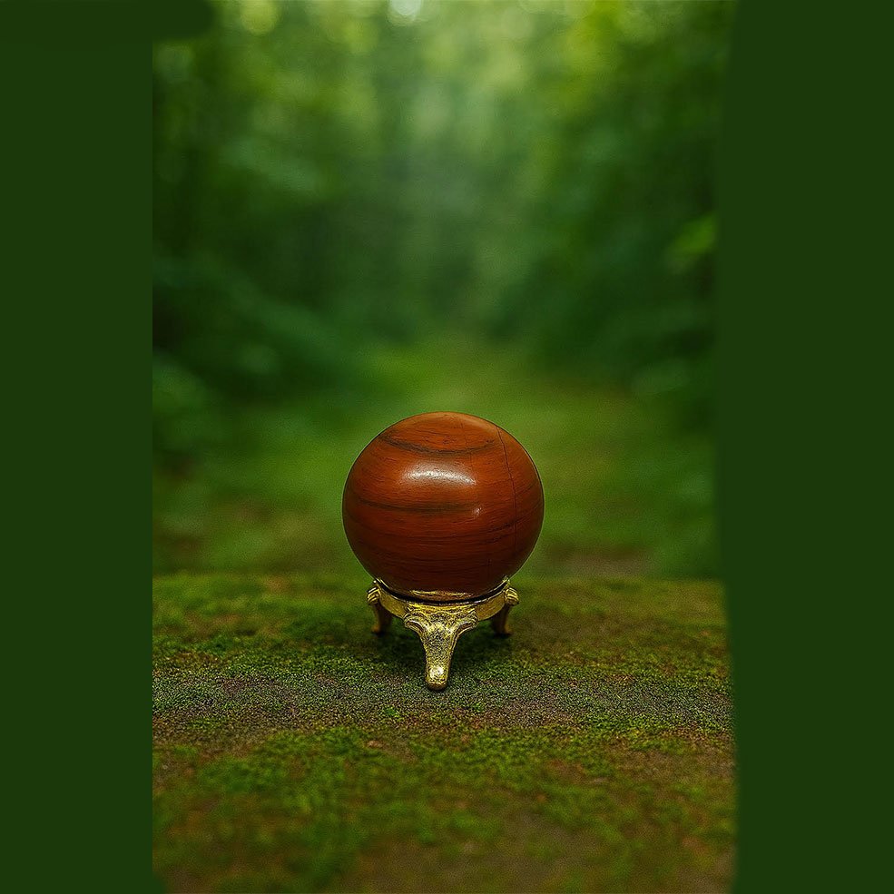 The Red Jasper Sphere is a striking collectible that embodies the earthy warmth of nature. Hand-carved and polished to perfection, this natural gemstone sphere showcases deep brick-red tones with subtle natural banding, reflecting both grounding strength and timeless elegance. Every piece is authentic, certified, and ethically sourced, ensuring you own not just a Gemstone, but a genuine collectible with unique energy and presence. Set on its golden stand, it becomes a captivating centerpiece for your décor, meditation space, or Gemstone collection. With its smooth spherical shape, the Red Jasper Sphere is also a symbolic piece – spheres are often seen as representations of wholeness, balance, and flow.